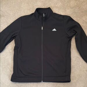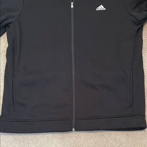 Experience the perfect blend of style and functionality with the Adidas Black Performance Jacket. Designed for athletic activities, this jacket features a full-length front zipper and a stand-up collar, offering a sleek and minimalist look. Its lightweight performance fabric ensures comfort and ease of movement, making it an ideal choice for both workouts and casual outings. Great Condition.