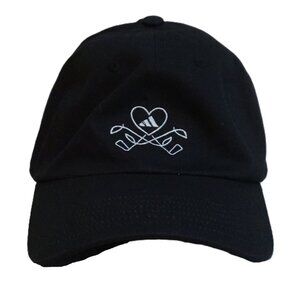 Adidas Golf Hat. Black with White Stitched Coat of Arms on Front. Adjustable Claw Clip Closure. Cotton and Polyester Blend. Women’s One Size Fits Most. New with Tags.