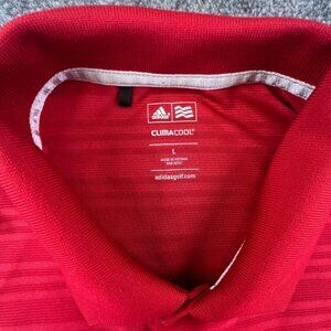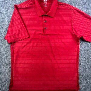 Adidas Golf Climacool Polo Shirt Large Short Sleeve Striped Red Mens Polyester