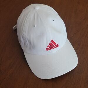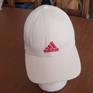 Adidas Golf Hat Cap White Adjustable Embroidered Lightweight. Pre-owned, good shape, please see photos for details.