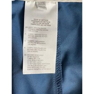 Elevate your golf game with these Adidas Golf Pants in blue, featuring a solid pattern and a flat front design. These pants are made with a blended fabric type and are lightweight, making them perfect for all seasons. The waist size is 34 inches and the inseam is 30 inches, with a mid-rise and straight leg style.