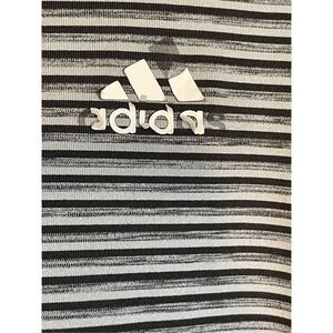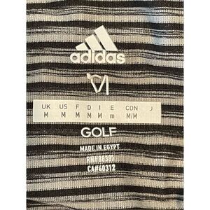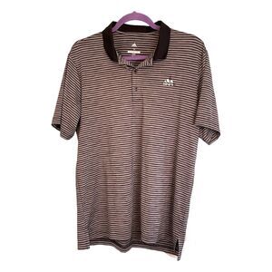Adidas Golf Polo Shirt Grey Black Striped Knit Short Sleeve Sweat Wicking M
