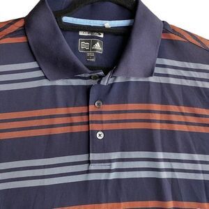 Adidas Golf Polo Shirt Mens Striped ClimaCool Athletic Casual Blue Orange Size L