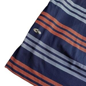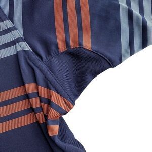 Adidas Men's Size L Climacool Athletic Polo Shirt Navy Blue Orange Rust Stripes