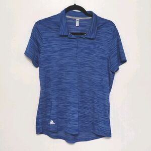 Adidas women's golf polo in vibrant blue heathered pattern, size Medium. This performance polo features moisture-wicking technology and stretch fabric that's perfect for golf, tennis, or active casual wear.