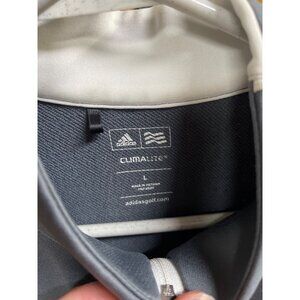 Adidas Golf Pullover Sweatshirt Performance Quarter Zip Climalite for men in size L, Gray color. Made from polyester, this solid pattern, basic style pullover. Classic unisex.