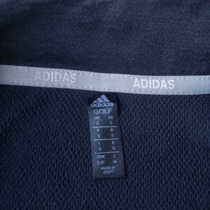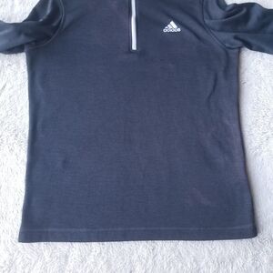 Adidas Golf quarter zip sweatshirt top, material 100% polyester, color dark grey, men's Small.