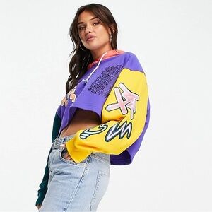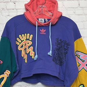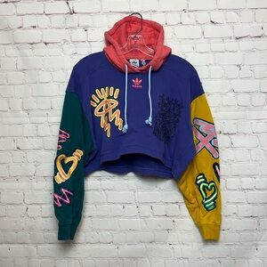The 2022 adidas X Kris Andrew Small Pride Collection was inspired by the Stonewall Activists of the Stonewall Uprising in 1969. Together adidas and Kris Andrew Small offer a collection in solidarity & celebration of the LGBTQIA+ community's past & present, honouring unique belonging – creating a colourful & diverse graphic message among this inclusive & optimistic collection. This partnership is also adjacent to adidas' two key Global Purpose Partners, Athlete Ally & Stonewall UK. Wear it loud and proud. This adidas crop hoodie was made in collaboration with Sydney-based artist Kris Andrew Small to honour the LGBTQ+ community and pave the way for the future. The vibrant graphics on the soft cotton sweatshirt are bold and unapologetic, the way love should always be.