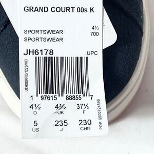 Introducing Adidas Grand Court 00s Kids Tennis Shoes in size 5, presented in a black-and-white colorway with style code JH6178. Item is in new condition with box.