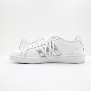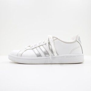 Adidas Grand Court CloudFoam White & Silver Leather Low Top Sneakers Women's 8.5