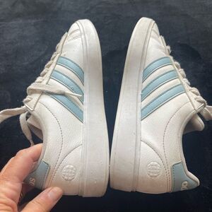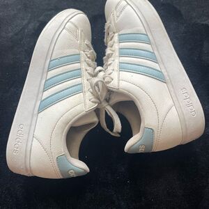 Adidas Grand Court 2.0 white and blue leather sneakers, size 6 1/2