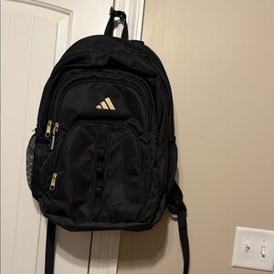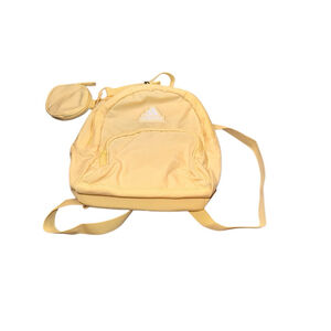 Stylish Adidas backpack in gray with a pink pouch. Perfect for everyday use.