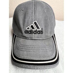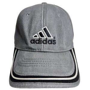Stylish and versatile, this Adidas cap features a sleek gray denim design with black and white stripes on the brim. Ideal for casual wear or sports activities.