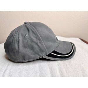 Adidas Gray Denim Adjustable Baseball Cap With Black & White Stripes