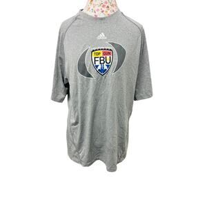 Gray Adidas Climalite performance tee with bold “Top Gun FBU” football graphic. Lightweight and breathable with athletic stretch. Perfect for training, gym sessions, or everyday sporty streetwear. Classic 2000s athletic vibe with Y2K revival energy.