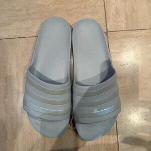Experience the perfect blend of style and comfort with these Adidas gray sandals. Featuring a sleek, minimalist design, these sandals boast a one-piece molded construction and a thick, textured sole for added grip. Ideal for casual outings, they offer a modern aesthetic with a smooth, curved upper strap and a matte finish.