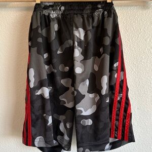 Comfortable regular fit shorts. Features gray and black tones with red accent. Ideal for everyday wear.