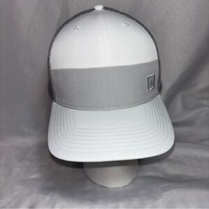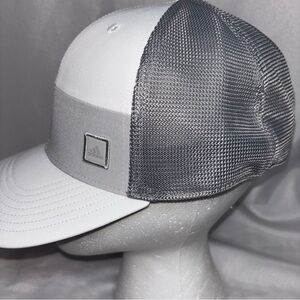 Stylish trucker hat in gray and white. Perfect for casual wear.