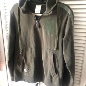 Excellent used condition green hoodie sweatshirt Zipper on collar Adidas