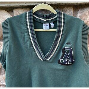 Adidas Green Sweater Vest Women's Large Embroidered V-neck Preppy Collegiate