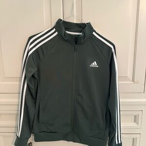 Adidas zip up jacket in an army green and white stripes. Size medium