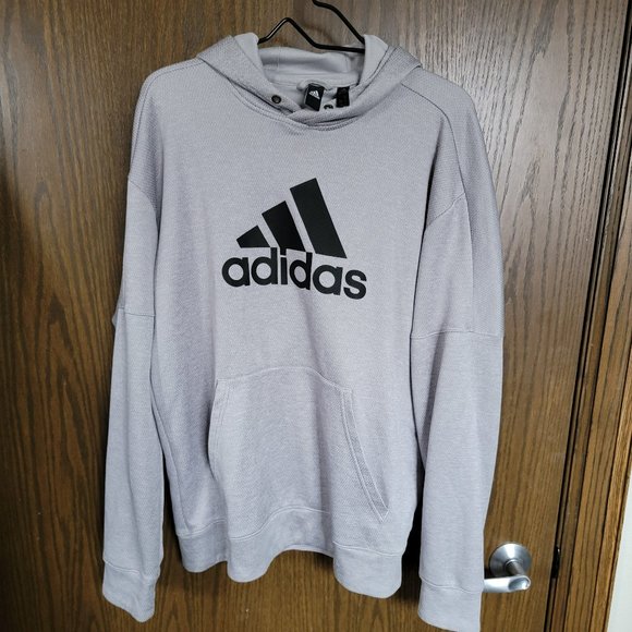 Adidas Grey and Black Logo Hoodie Size Large *** No Hoodie String ***