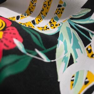 Get ready to turn heads with this super stylish Adidas x HER Studio London collaboration dress! This classic black long-sleeved mini dress gets a vibrant upgrade with the iconic Adidas Trefoil logo filled with a stunning, colorful floral print designed by HER Studio London.
