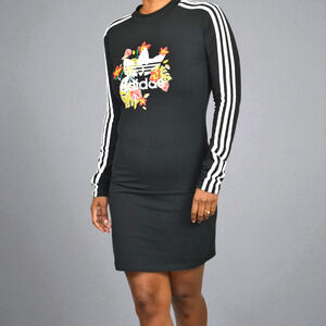 Adidas HER Studio London Floral Trefoil Dress Black Long Sleeve Mini Logo Medium