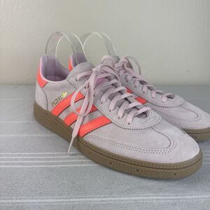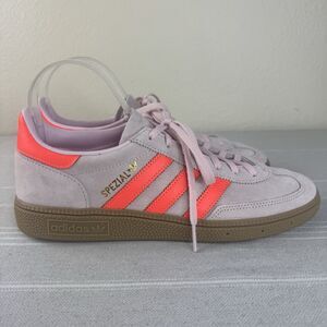Adidas Handball Spezial Lace Up Athletic Sneakers Clear Pink Solar Orange 9