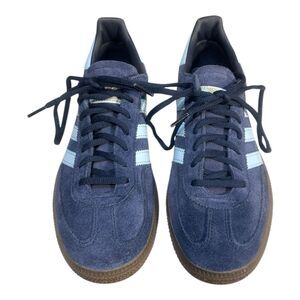 Adidas Handball Spezial in Collegiate Navy and Clear Sky, Mens size 8 new without box. Style code BD7633. Features premium suede uppers, retro 3-Stripes detailing, and a gum rubber outsole inspired by classic indoor handball shoes. A timeless design loved for its vintage terrace style and everyday comfort.