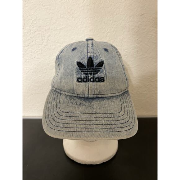 Adidas Hat Cap Strap Back Womens One Size Blue Denim Look Embroidered Cotton