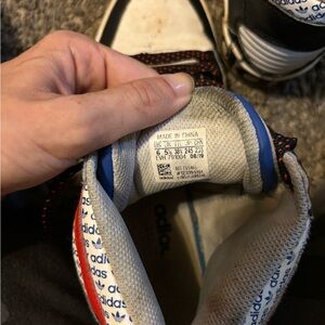 Adidas high-top sneakers featuring vibrant red and blue accents. Ideal for everyday style.