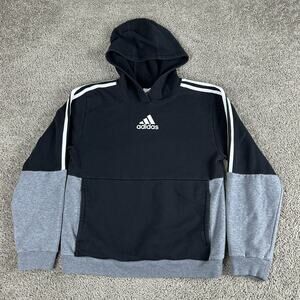 Adidas Hoodie Boys Extra Large Black Gray 3 Stripes Long Sleeve Pullover