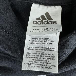 Material tag not shown but appears to be a cotton/polyester blend typical for Adidas fleece hoodies
