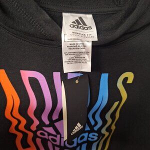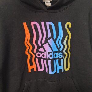 Adidas Hoodie Colorful Boys 18 20 XL Black Rainbow Wavy Teen Tween