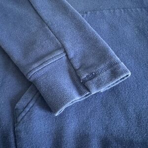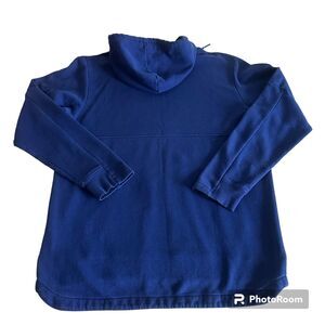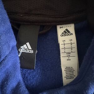 Elevate your activewear with this stylish Adidas hoodie in size L. The hoodie comes in a solid blue color with a round neck and long sleeves, featuring a drawstring closure and fleece fabric type. The Adidas Originals logo adds a touch of accent to the regular fit pullover hoodie. This versatile hoodie is perfect for any season, whether you're hitting the gym, going for a walk, skateboarding, playing basketball, or running and jogging. It is made of a comfortable cotton blend material and is perfect for any active adult who wants to stay warm and stylish. Excellent condition. No rips/holes/tears/stains/discoloration/snags. Kept in a smoke/pet free home.