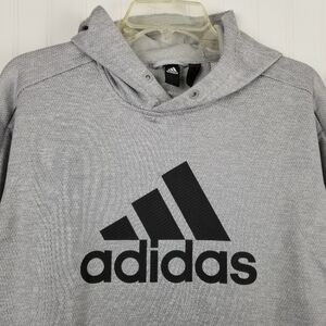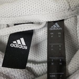 Adidas Hoodie Sweatshirt Logo Spellout Three Stripe Gray Silver Adult Medium