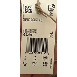 Adidas IG9239 GRAND COURT 2.0 SHOES White Semi Pink Spark Women Size 8.5 New