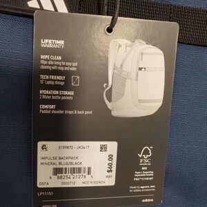 Adidas Impulse Backpack Mineral Blue/Black Laptop School Bag NWT