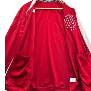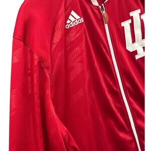 Get ready to cheer on the Indiana Hoosiers in style with this awesome Adidas On Court Warm Up Jacket! This red and white zip-up jacket is perfect for any fan. It's in great condition and ready to wear. Check out all the pictures for measurements and to see any wear. No rips or tears! The item shown is the exact item you will receive.