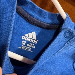 Adidas romper in bold blue. Soft cotton fabric. Ideal for infants.