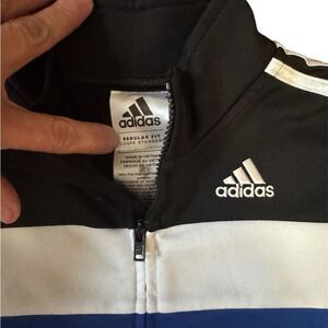 Item Details: Featuring block design with Black, White & blue panels. Includes iconic Adidas logo and stripes on sleeves.