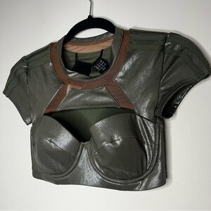 Adidas Ivy Park Metallic Green Brown Short Sleeve Cropped Bikini Swim Top