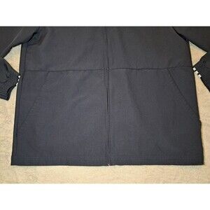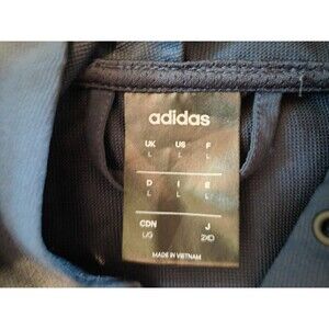 The Adidas Jacket for men in size Large features a full zip closure and long sleeves, making it suitable for travel, activewear, and casual occasions. Made of 100% polyester with a solid navy blue color, this track jacket also includes kangaroo pockets for added functionality. With the signature Adidas brand, this jacket is perfect for various activities like gym training, walking, jogging, and even basketball. Its breathable design and athletic theme make it a versatile and stylish addition to any wardrobe.