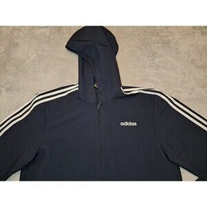 Adidas Jacket Mens Large Full Zip Long Sleeve Kangaroo Pockets Navy Run Hoodie