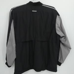 Adidas Jacket Mens Medium Black Gray Full Zip Windbreaker Three Stripe Retro