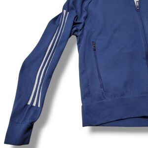 Adidas Jacket Size Small Women's Adidas ID Bomber Jacket Full Zip Up Jacket Knit Jacket Women's Jacket Two Zippered Pockets Athletic Athleisure Activewear Outdoors Blue With White Adidas Three Stripes Down Sleeves