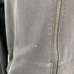 Fabric good used condition, couple of small holes front & middle right, discoloration in a couple areas front, left sleeve, and back