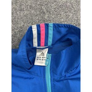 Adidas Jacket Womens Medium Blue Full Zip Windbreaker Mesh Lined Running Track