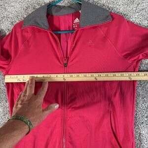 Adidas Jacket Womens Medium Pink Climalite Full Zip Thumb Holes Athletic AF5002